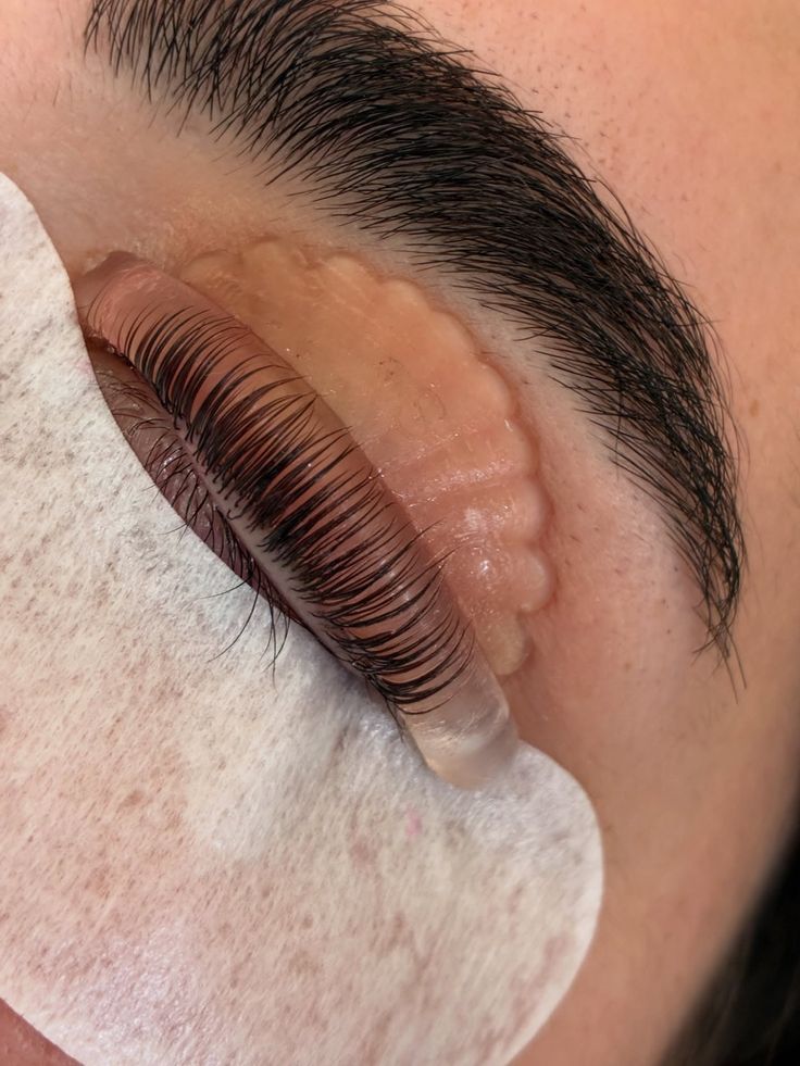 Después de la limpieza, se fija el pad sobre el párpado superior. Luego se peinan las pestañas hacia arriba y se adhieren con un pegamento especial. Este proceso determina la curvatura final, por lo que es fundamental realizarlo con precisión.